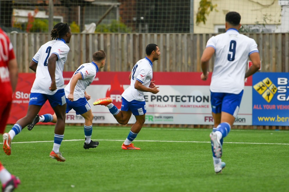 The visitors were 2-1 winners, with Jorge Dwyer opening the scoring immediately before Jordan Cobley’s red card on 20 minutes. Despite being a man down, they doubled their lead from the penalty spot through Tom Ruffer – with Marc Stallard netting a late consolation for the hosts.
